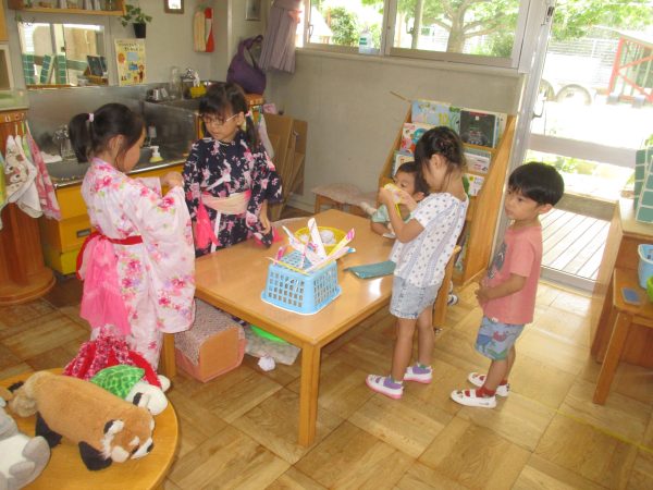お祭りごっこではチョコバナナを自分たちで作って出店を出したりと子どもたちの遊びは無限大に広がっていきます。