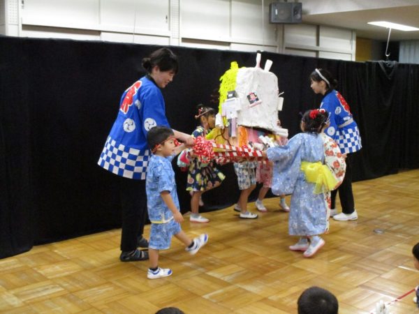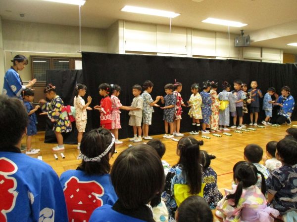 残念ながらの雨ではありましたが、思い思いの浴衣や甚兵衛などでいつもと違う雰囲気の子ども達。