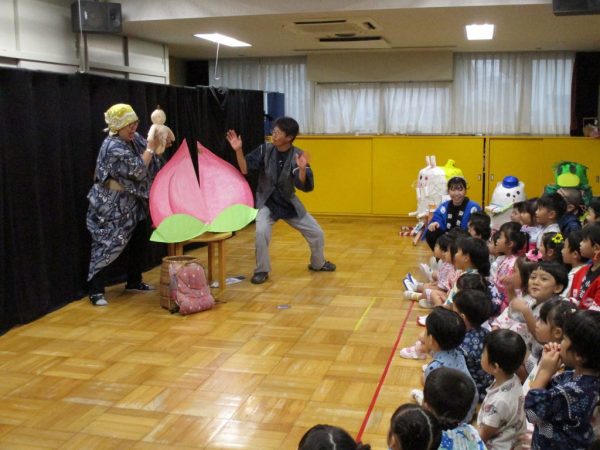 毎年コソッと練習して準備をしますがアドリブ多めの「劇団拝島」。今年は「桃太郎」を行いました。